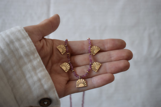 Symbolic Strands Necklace 5 - 14k Sunrise Amulets & Pink Tourmaline